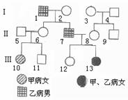 10.右图为某家族甲(基因为A、a)、乙(基因为B、b)