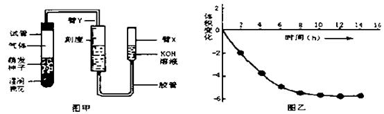 (2)图甲为一测呼吸作用的实验装置,用以测定水稻种子萌发时密闭容器中气体体积的变化。每隔一段时间.即调节臂X与臂Y管内的液面至同一水平,并通过刻度尺量出气体体积。体积变化与时间之间关系如图乙所示。