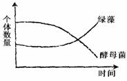 2.在培养条件完全相同的情况下,用一种培养液分别培养单细胞绿藻和单细胞酵母菌,培养结果如右图所示。造成图示结果的最可能原因是