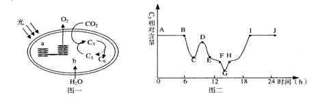 30.Ⅰ(10分)图一为叶录体结构与功能示意图,图二表示一株小麦叶片细胞内C3相对含量在一天24小时内的变化过程,请据图分析: