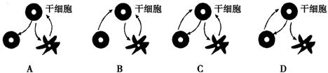 高等动物随着胚胎发育,仅有少数细胞依然具有分化成其他细胞类型和构建组织器官的能力,这类细胞称为干细胞,如造血干细胞。下图中最能完整显示正常机体内干细胞基本特征的是
