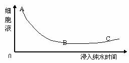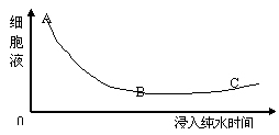 实验②:取同一新鲜蔬菜若干浸入一定量纯水中,每隔一段时间,取出一小片菜叶,测定其细胞液浓度,所得数据可绘出如右图的曲线: