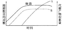 Ⅱ. (7分)下图为某细菌的生长曲线,以及A、B两种代谢产物的积累曲线。请据图回答: