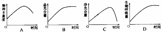 23.一块弃耕的农田,很快长满杂草,几年后,草本植物开始减少,各种灌木却繁茂起来,最后这块农田演变成了一片森林。这片森林在不受外力干扰的情况下将会长期占据那里,成 为一个相对稳定的生态系统。在此演变过程中,相关变化趋势正确的是 ( )