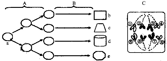 (4)图C中细胞有染色体--条,①和⑤两条染色体是经过分裂间期--形成