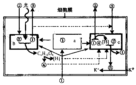 (5)在光照充足的条件下,细胞器c中①和④物质产生的物质②除图中箭头所示去向外,还可至少穿过 层生物膜,进入细胞器b中。