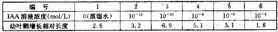 为实验材料,配制一系列不同浓度的IAA溶液进行实验。实验数据如下表所示,分