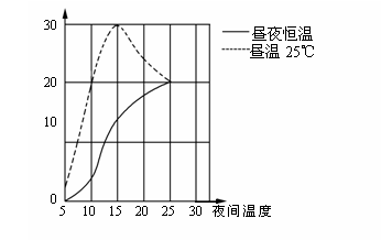A.昼温为25℃时,植物生长最快的夜间温度是15℃