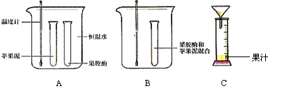 ① 将果胶酶与苹果泥分装于不同试管,在10℃水浴中恒温处理10分钟(如图A)