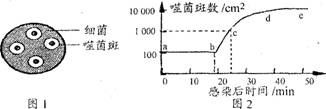 15.噬菌斑(如下图)是在长满细菌的培养基上,由一个噬菌体侵染细菌后不断裂解细菌产生的一个不长细菌的透明小圆区,它是检测噬菌体数量的重要方法之一。现利用培养基培养并连续取样的方法,得到噬菌体在感染大肠杆菌后数量的变化曲线(下图2),对该曲线的叙述正确的是……………………………………………………………………………………( D )
