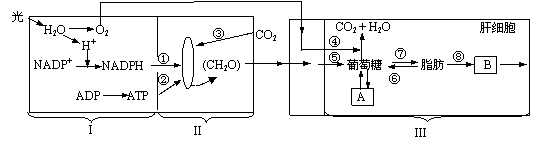 (3)肝脏是人体非常重要的器官,I、Ⅱ过程生成的糖类通过摄食并消化吸收进入肝细胞后,既可被氧化分解,也可通过⑥形成物质[A] (填名称)。