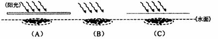 22.资料:一些调查表明,从1970年开始世界上有许多两栖类动物种群数量大幅度减少,甚至完全消失。有人怀疑,大气自氧层的破坏可能与这一现象的成因有关联。为了证实这个假设,科学家在某在地区采集了能在当地繁衍的蝾螈、蟾蜍和青蛙3种两栖类的受精卵,分别放在纱网制的笼中(纱网对受精卵及胚胎发育没有不利影响),每笼各100粒受精卵,置于当地的池塘中。笼子共分成3组:A组笼子上方加了一层透明玻璃隔板,用以阻挡紫外线;B组笼子上方没有隔板,可以直接受到日光的照射;C组笼子上方加了一层不能阻挡紫外线的透明塑料板(如图所示)