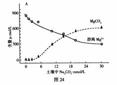 (3)优质牧草主要是一种叫“羊草”的植物,不同地域分布在羊草叶色分为深绿色和黄绿色,这与叶片中叶绿素含量多少有关。通过对羊草生存土壤中含盐量与游离Mg2+的研究,得到图所示的结果。若某地域土壤中Na2CO3浓度为30mmol/L,请据图分析,此地生长的羊草植株多为 色。通过对控制叶色主要酶的研究发现,不同地域的羊草并无差异,说明羊草颜色是 共同作用的结果。(了解)