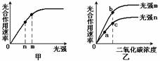 图甲表示A植物光合速率受光照强度影响的变化曲线。图乙表示A植物光合速率在不同光照强度环境条件下,光合速率受CO2浓度影响的变化曲线。a点与c点相比较,c点时叶肉细胞中C3的含量;b点与c点相比较,b点时叶肉细胞中C5的含量依次是