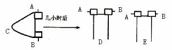 用燕麦幼苗作实验材料,在黑暗环境中进行以下实验:将被切下来的胚芽鞘顶端C水平放置,取两个琼脂块A和B紧贴在胚芽鞘顶端C的切面上。几小时后,将琼脂块取下,分别放在已切去尖端的胚芽鞘D及胚根E上(已知胚根比胚芽对生长素的浓度更敏感)。实验装置如下图。再过几小时后,胚芽鞘D、胚根E的生长方向分别为