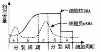 右图表示洋葱根尖细胞有丝分裂各阶段细胞核中DNA和细胞质中mRNA含量变化。下列有关说法正确的是