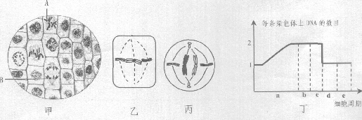 (4)甲图中B指示的细胞如进入丁图的e期,这一时期叫做 ,此时,细胞内活动加强的细胞器是 。在减数分裂过程中,对应于丁图c→d变化的时期是 。