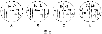 ⑶如果该生物进行测交,另一亲本体细胞中的染色体和有关基因的组成应是图2中的 。