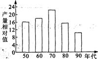(7分)下图表示我国某海域一种渔业资源的产量从上世纪,50年代至90年代的变化情况,请据图