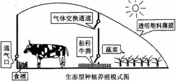 (1)牛棚内产生的_________可扩散进入蔬菜大棚,提高蔬菜大棚,提高蔬菜的光合效率;蔬菜光合作用产生的__________可扩散进入牛棚。