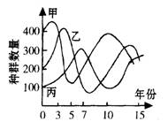 B .乙在第 5 一 7 年之间数量大幅度下降的原因可能是丙大幅度增加和甲大幅度减少![]()