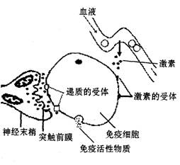34. ( 8 分)科学研究表明:精神因素(焦虑、紧张等的心理应激)会使 T 细胞活性下降,对病毒、真菌感染的抵抗能力和对肿瘤细胞的监控能力下降,还间接引起机体生成抗体的能力降低。右图表示神经、免疫、内分泌三大系统相互调节的部分示意图,请据图答下列问题。 ( 1 )由右图可知,神经系统可通过突触前膜____________直接调节免疫器官或免疫细胞的活动,还可通过下丘脑分泌有关激素间接调节免疫器官或免疫细胞的活动。![]()