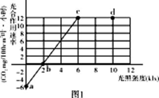 (1)根据图1,当光照强度为4Klx时,该植物叶片总(真正)光合作用速率是每100cm2叶每小时吸收CO2 mg。