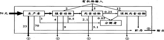 (4)试分析图中植食动物、肉食动物和顶位肉食动物随营养级的升高需要的有机物输入越来越多的原因 。