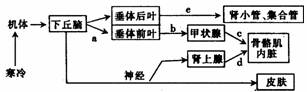 ① 当受到寒冷刺激时,a、b、c、d激素的分泌均会增加