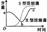 肺炎双球菌转化实验中,将加热杀死的S型细菌与R型活细菌相混合后,注射到小鼠体内。在小鼠体内,S型、R型活细菌含量变化情况如右图所示.下列有关叙述错误的是( )