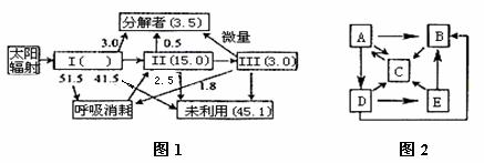 (2)图1中未标记出II的呼吸量,其呼吸量应为 百万千焦(结果保留1位小数)。