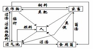 34.(7分)1985年前,某地农作物秸秆都是当作燃料,而农户和家畜的粪便等均作为肥料直接施入农田。后来逐步开始进行农村产业结构调整,下图是2006年时当地生态工程示意图。