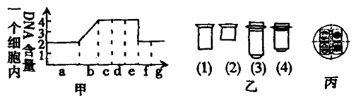 26、下面甲图示洋葱根尖生长点连续分裂的细胞在各个时期细胞核内DNA含量的测定结果,乙图是一组目镜标有5×和16×字样、物镜标有10×和40×字样的镜头,丙图是某同学在乙图中选用的一组能放大160倍的镜头组合所观察到的图像。欲将丙图视野中处于甲图e时期的细胞移至视野中央进行640倍高倍镜观察,正确的镜头组合及装片移动操作方向应是