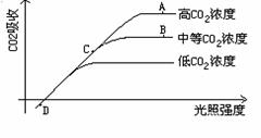 27、通过测定CO2的交换量,用下图表示光强和CO2浓度对光合速度的影响。图中从A至D,哪一点上只有光是限制因子