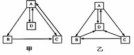 甲、乙为有关生态系统碳循环、人体体液中物质交换的示意图, 分析以下说法正确的是: