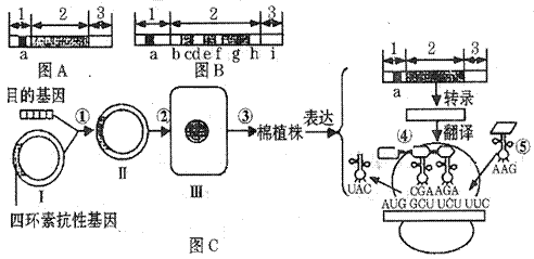 ⑴图C中的目的基因是从图A和图B中的哪一个基因提取的_______,图C中科学家在进行[①]操作时,要用_______分别切割运载体和目的基因,运载体的黏性末端与目的基因DNA片段的黏性末端就可通过_______而结合。