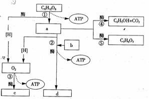 ㈡。上右图表示生物体内呼吸作用的过程,图中a-d表示某种物质,①-⑤表示相关生理过程,据图回答: