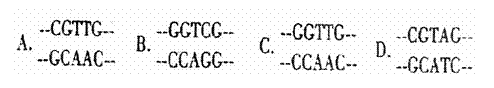 经亚硝酸盐作用后,若链①中的A、C发生脱氨基作用,经过两轮复制后其子代DNA片断之一为 ( )
