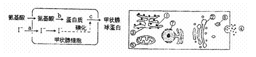 34.甲状腺细胞可以将氨基酸和碘合成甲状腺球蛋白,并且将甲状腺球蛋白分泌到细胞外。其过程如下图所示。下列叙述错误的是 ( )