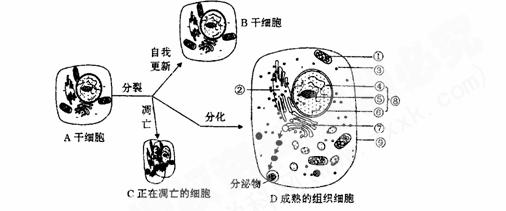 46、(7分)下图表示干细胞的三个发育途径。据图回答下列问题: