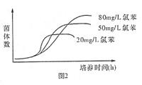 (3)将SP1菌接种在含不同浓度氯苯的Ⅲ号培养液中培养,得到生长曲线(如图2)。从图2可知SP1菌在