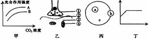 A.若甲图中A、B曲线分别代表C3和C4植物,则B曲线可代表的是玉米