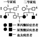 分析右图遗传系谱,苯丙酮尿症、尿黑酸尿病、血友病的基因分别用p、a、h表示。一号和二号家庭均不携带对方家庭出现的遗传病基因。下列说法正确的是( )