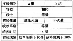农药的化学性质一般比较稳定,能够在土壤中残留较长时间。农药能不能被土壤微生物分解呢?为了尽快得到实验结论,有人用“敌草隆”(一种除草剂)进行了实验,实验情况如下表。下列有关实验的叙述中,正确的是( )