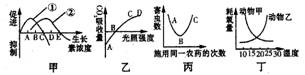 D.丁图中动物乙是恒温动物,动物甲是变温动物。