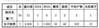 23、分析下表某种大肠杆菌细胞的分子组成,能够做出的推论是 ![]()