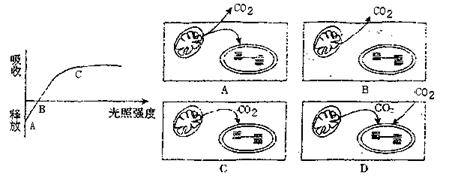 26.通过实测一片叶子在不同光照条件下CO2吸收和释放的情况得到如图所示曲线图中所示细胞发生的情况与曲线中AB段(不包括A、B两点)相符的一项是