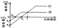 右图为一定条件下测得的典型阳生植物和阴生植物在不同的光照强度下CO2吸收(释放)量的曲线,有关说法正确的是
