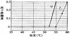 科学家将两种植物的叶片以不同温度处理,然后测量这两种植物叶片的离子渗漏量