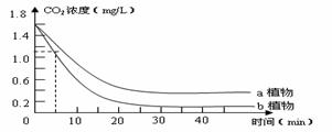 将叶面积相等的C3、C4植物的叶片分别放置在相同的、温度适宜且恒定的密闭小室(体积1L)中,给予充足的光照,利用红外测量仪每隔5 min测定一次小室中的CO2浓度,结果如下图所示。下列说法正确的是